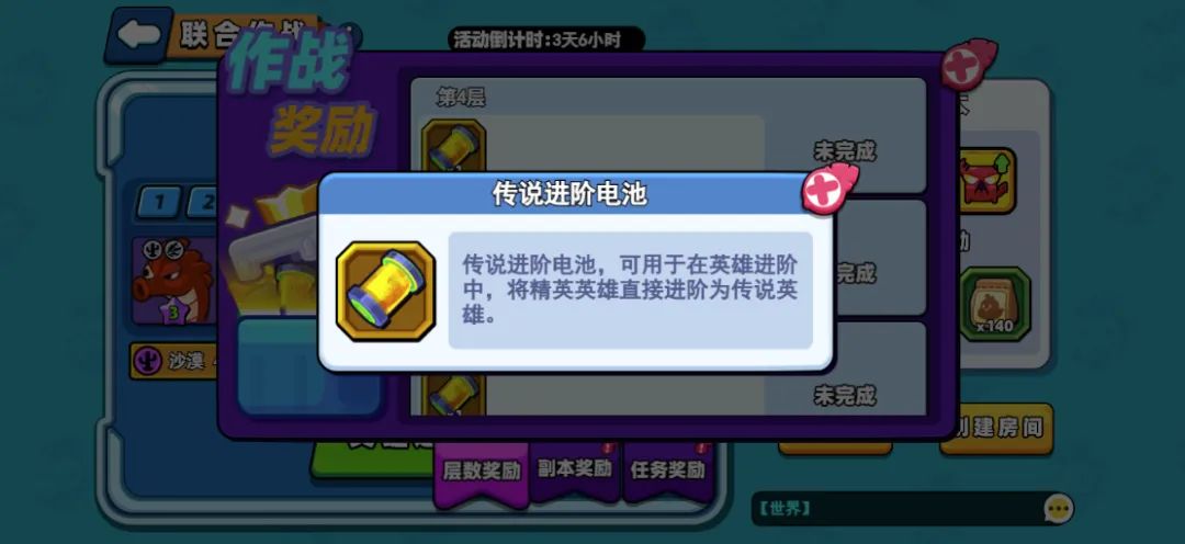 ● 传说进阶电池,可用于在英雄进阶中,将精英英雄直接进阶为传说英雄!注意:【联合作战】玩法结束后进阶道具会清空