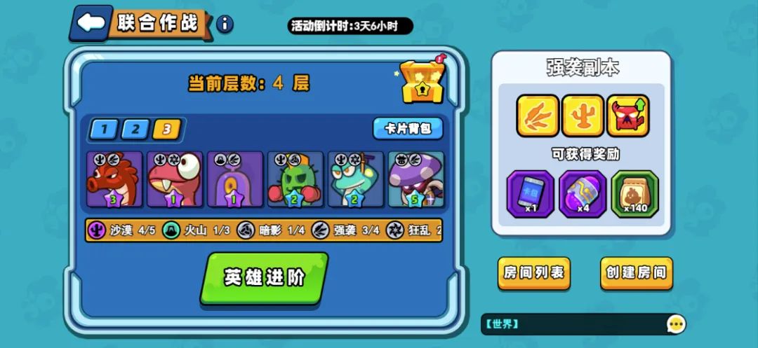 ● 队长们两两组队进行挑战,失败无任何损失,成功则获得当前副本的奖励,完胜时,则房主的层数上升1层,类型随机,当到达最高层时,不再发生变化。
