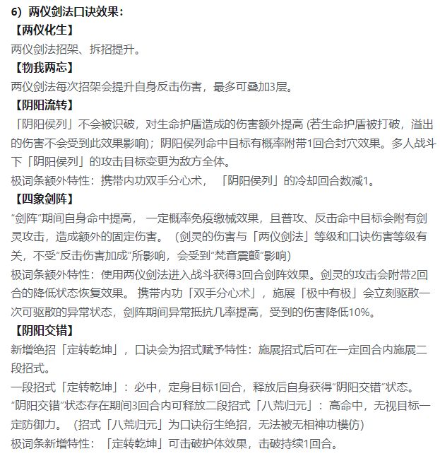 口诀和六阳针对北冥不同,无论是多技能释放还是词条四象剑阵能联动双手,都非常契合双手内功,如果双手内功能争气一点,真的非常推荐大家去玩,不会比素心弱,且能悟性发育
