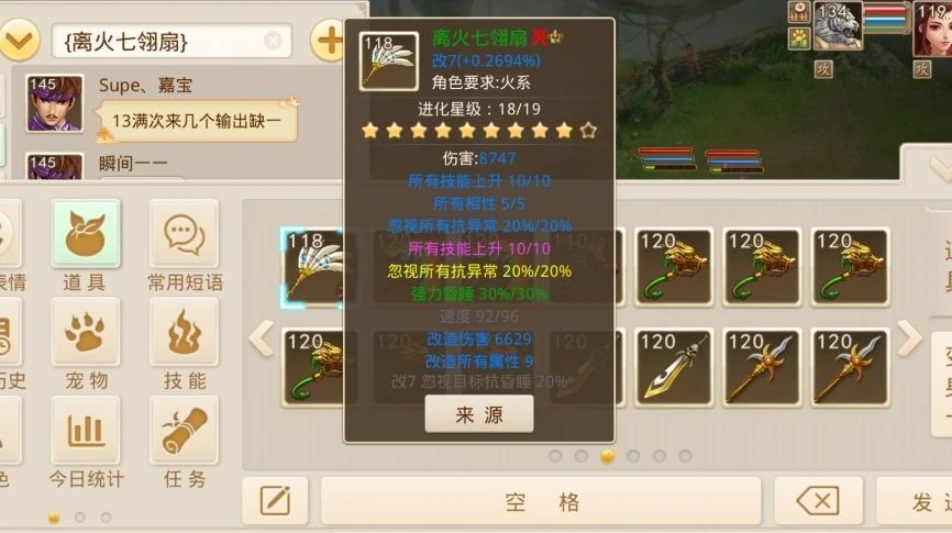 今天看看道友们带来的极品装备组合~140级力法敏体全能型扇子,2件满绿属性+1件满暗速神级扇子,还有全套连击率89%+反击率101%攻防一体装备!究竟谁能拿下MVP?