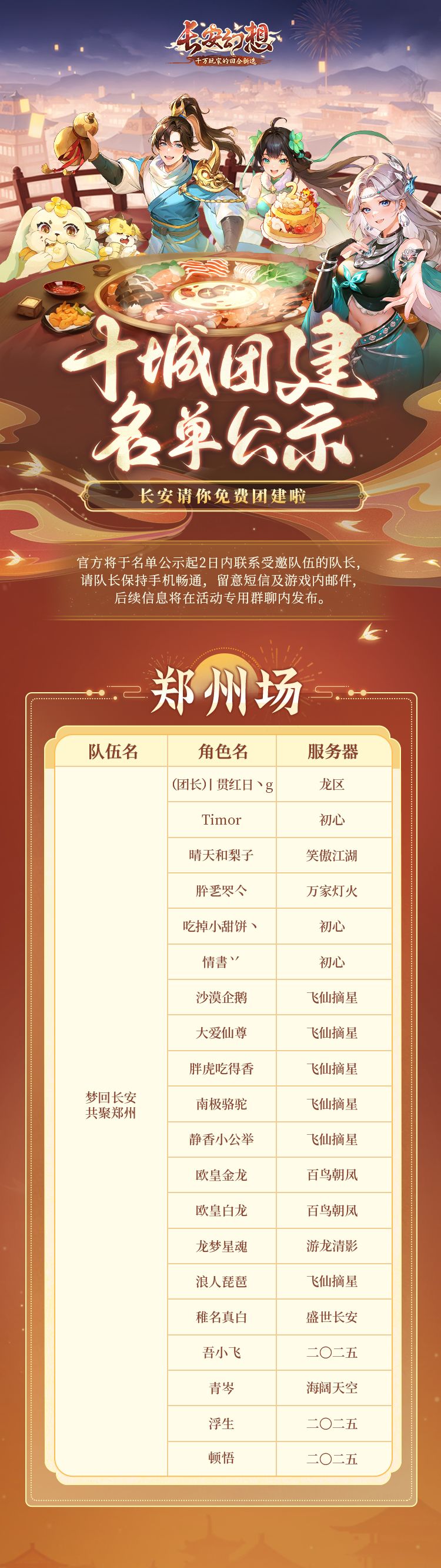长安幻想新春聚会 | 十城团建名单公示