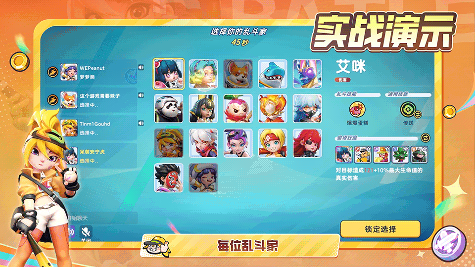 玩家在进入对局前,需要选择一名乱斗家角色,并配置相应的伙伴阵容和通用技能。另外3名队友一起,与其他的12名玩家在乱斗场上展开一场4v4v4v4的乱斗交锋。