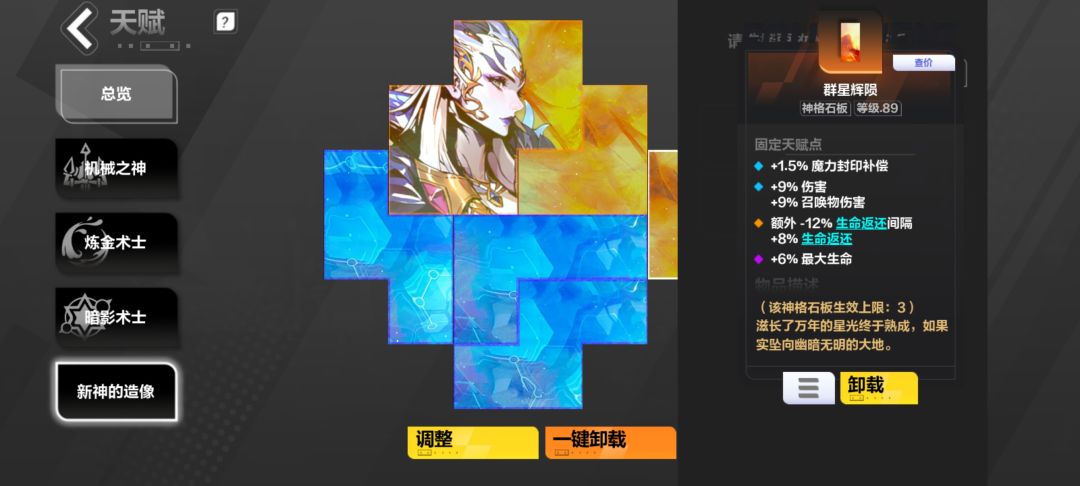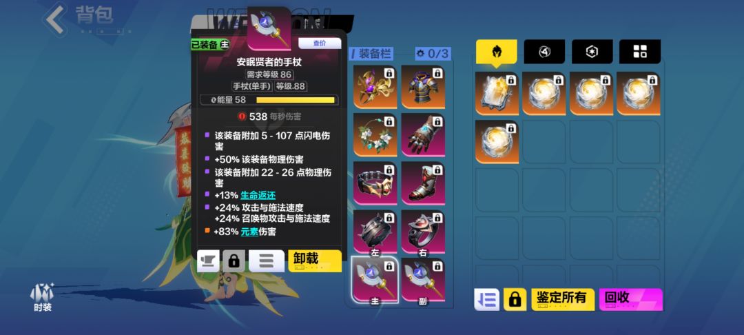 武器里面将双手武器换成了两个单手武器,主要是想贪一个生命返还的词条,其实这里换完之后伤害对比原来那个炮,降低了15%![[表情_叹气]](https://img.tapimg.com/market/images/9598a6cd4e4eba8470eb1520ed6a885d.png)