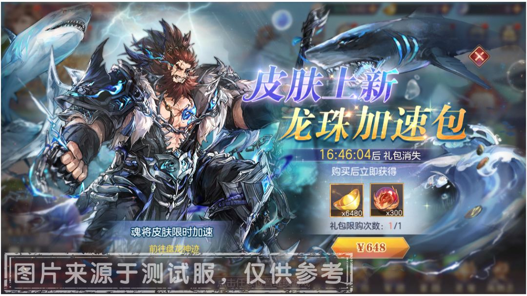 龙珠加速包:内含「龙珠」*300,「元宝」*6480,售价648元,活动期间限购1次。
