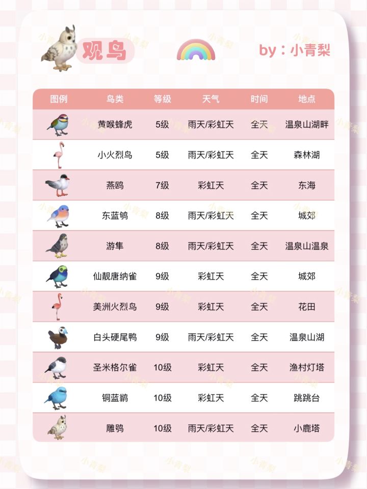 心动小镇彩虹天攻略来啦|1-10级鸟鱼虫图鉴