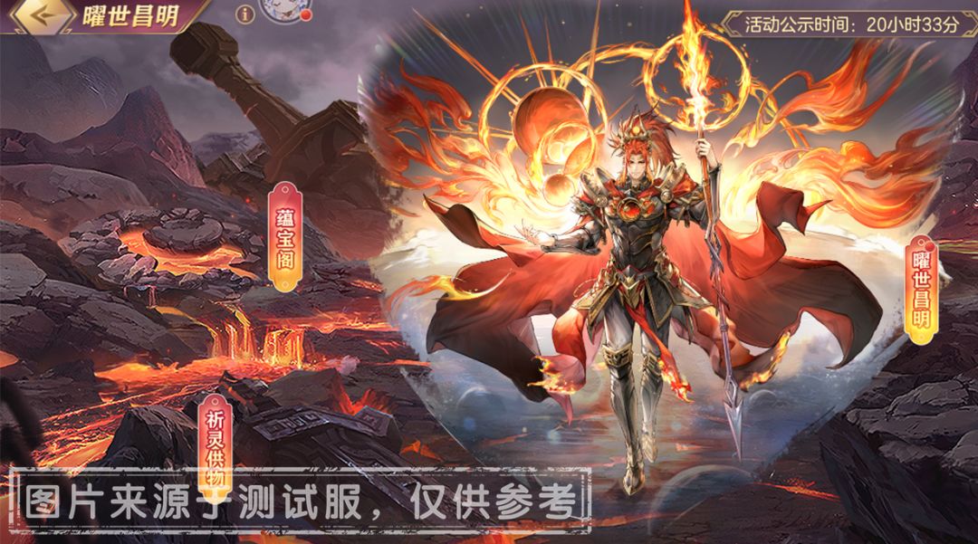 【曜世昌明】模块中将上架「曜明炎灵」,小将军们可以消耗【炎灵符石或祈灵卷轴】进行祈灵!每次祈灵必获得善灵币*60,有概率获得本次善灵:曜明炎灵、炎灵之灵魄、淬灵星尘、善灵之尘等丰厚大礼。