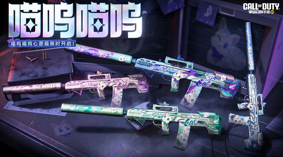 面对紧张刺激的战斗环境,可爱的猫咪会如何行动呢?人气超高的喵呜喵呜心愿箱返场啦。心愿箱中有四把武器,分别是Oden-喵呜喵呜·幻梦、Oden-喵呜喵呜·粉萌、Oden-喵呜喵呜·湛蓝以及Oden-喵呜喵呜·薄荷,快来看看吧~