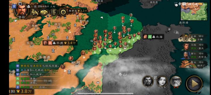本来可以收获二十加武将,现在变成一堆俘虏,现在和袁绍结盟共抗袁术,虎牢关下面死了有五六万了,耐久都被打掉了一半,必须帮袁绍守住陈留,要不然我压力倍增,北海战场全是人,看起来势均力敌啊