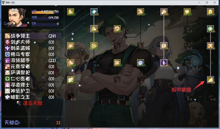这里就简单了 看你角色用的什么武器 就随便点一些对应的天赋 其实也大差不差了