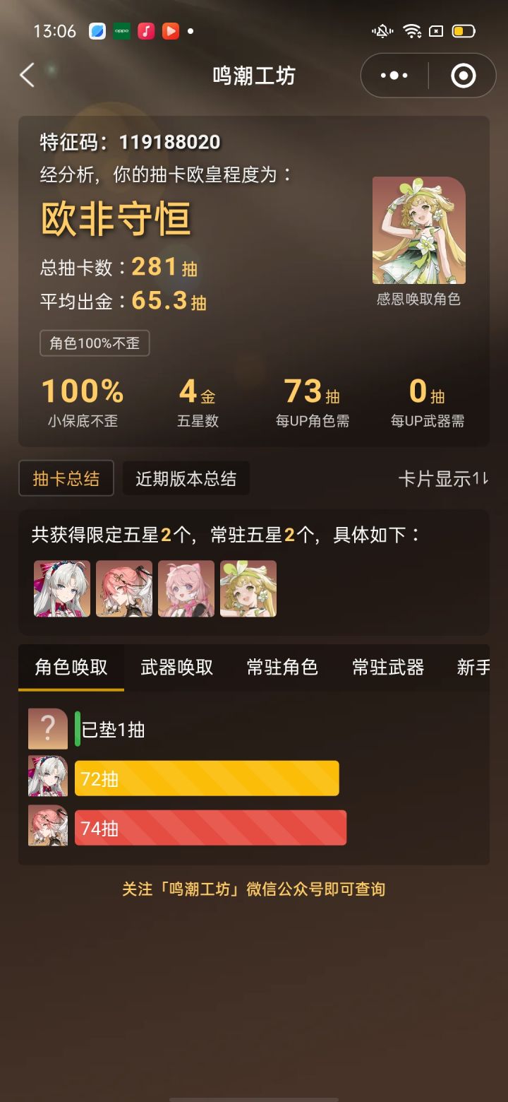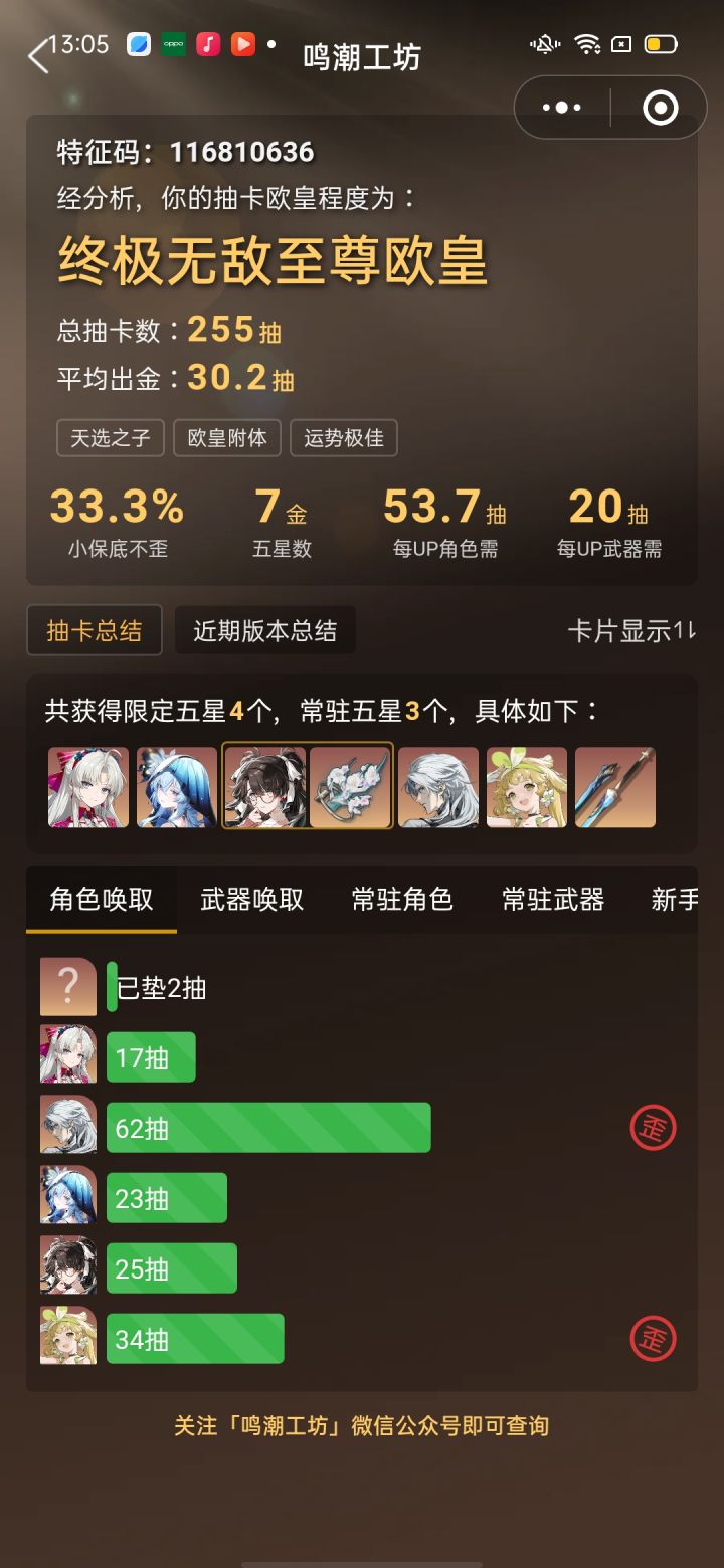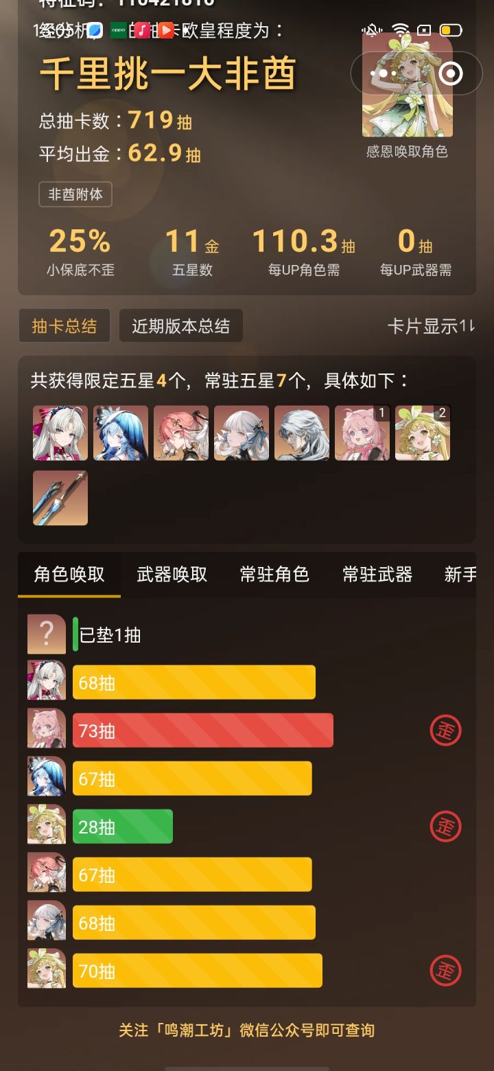 (战双明朝双修玩家进) 大号绑着一个战双号 玩了快一年了 在岗基本都有了 只不过除了曲除了白送的莉莉丝以外都没专武,复读机也只有鱼和白送的丽丽丝还有七实有,在岗角色除了增幅基本上都已经终解了 ,而且战双我还是很欧的 两发单抽两个s辅助机 偷赌狗吧 虽然只比60多 但是最起码都是60多出的 65左右出 没有吃到100保底 武器池子22抽两个六星 我要不要把大号跟战神号丢了 然后去玩小号 然后再重开一个又战双号重新玩 #鸣潮 #鸣潮奏鸣测试创作激励
