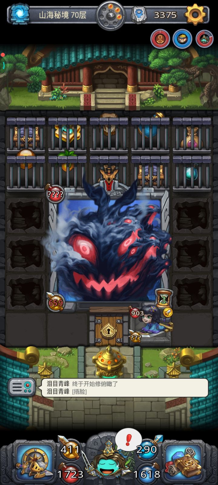 爬楼思路:进图只加3级看怪,留探索点买迷宫商店的草药和金木水火土气,迷宫装备只要斗篷。前期普通层就利用剑仙被动打,boss用雷劫打。留27颗草药等升到化身再炼,9颗草药一起炼,3次保底。一般三四十层就可以拿到隐藏了。也能轻松爬上70层拿符箓师碎片。