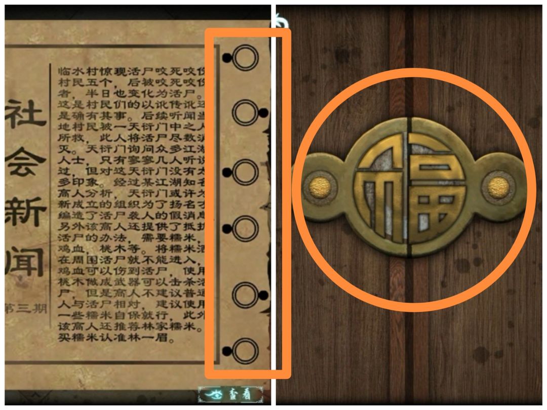 报纸上的黑点对应按钮,圆圈圈对应“福”字
