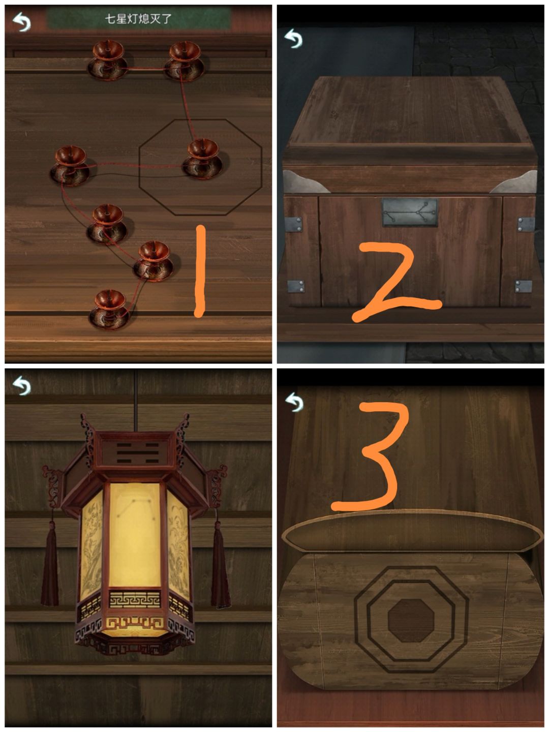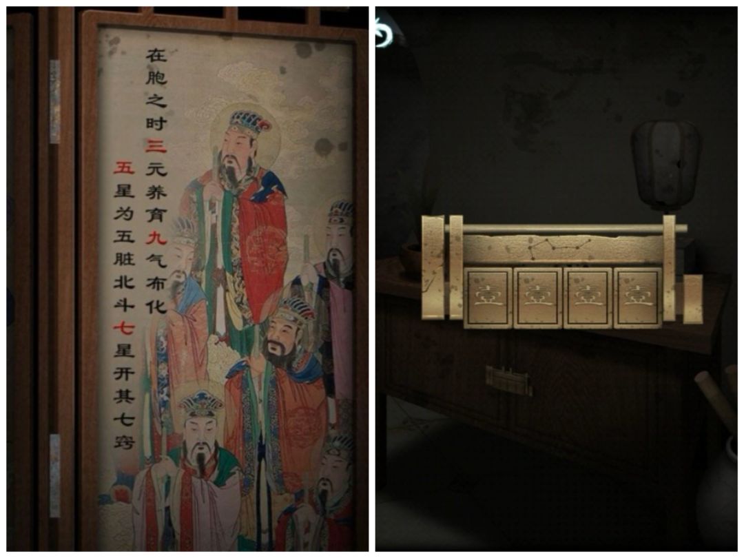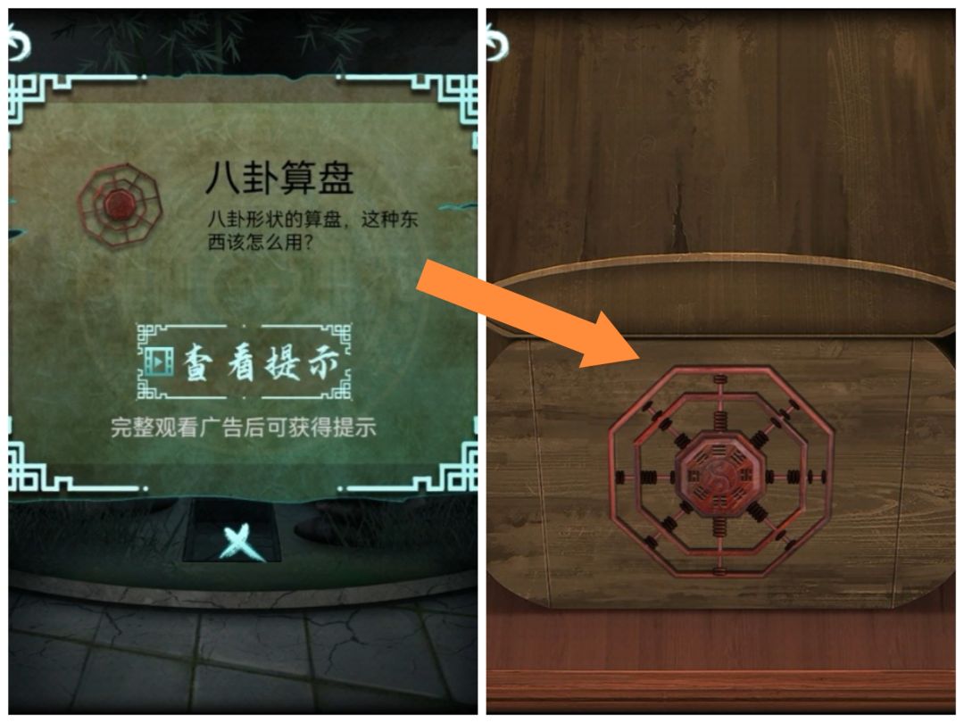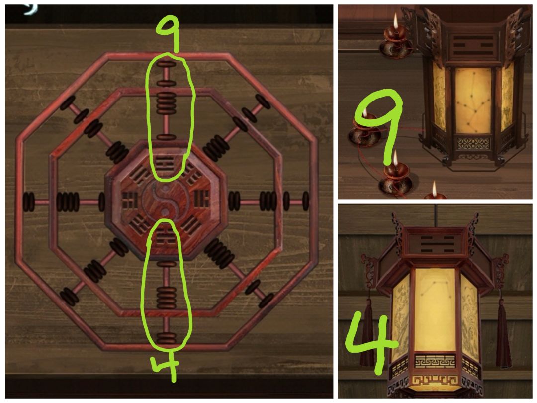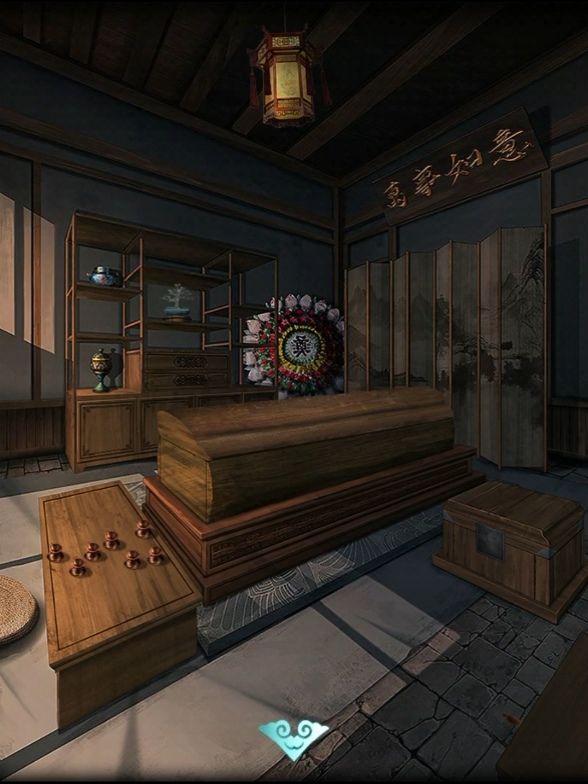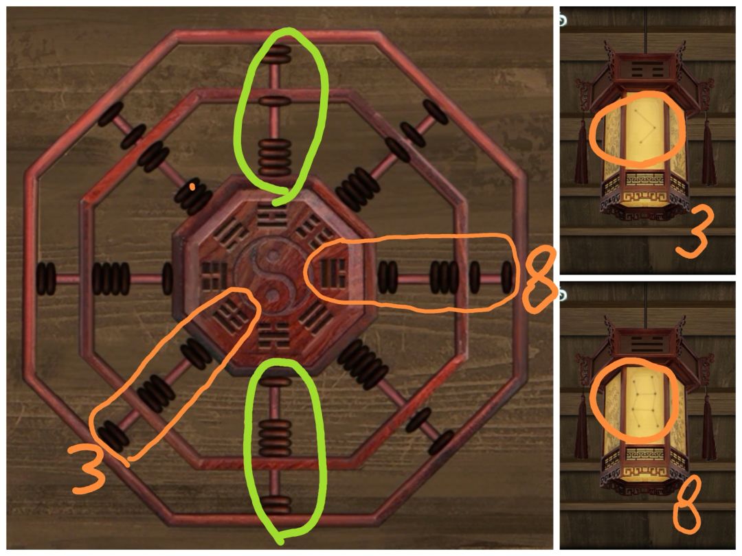 转动灯笼,与算盘图案对照,把算盘珠子拨到正确数字,打开棺材