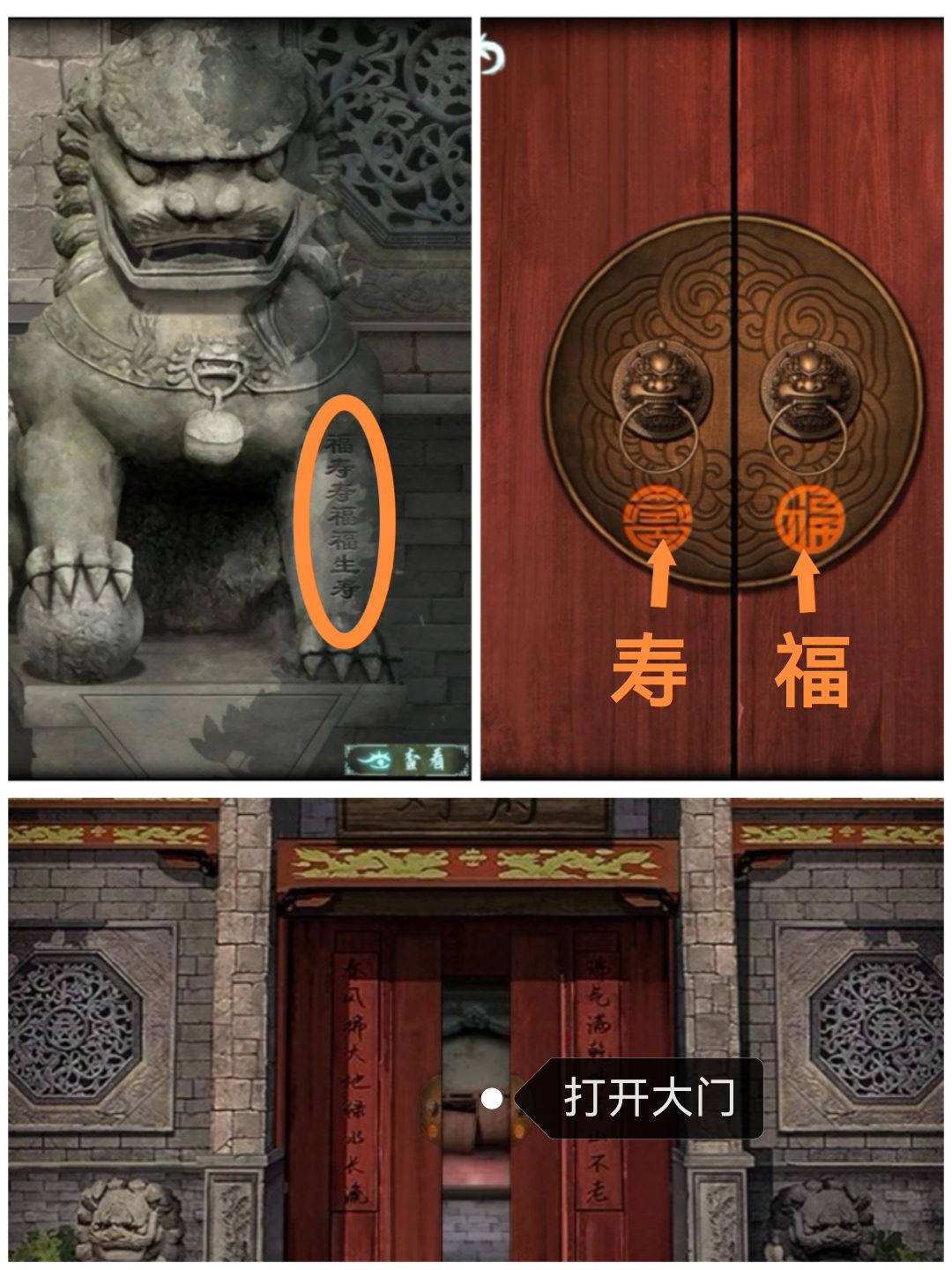 顺序为“福寿寿福福寿”,打开大门