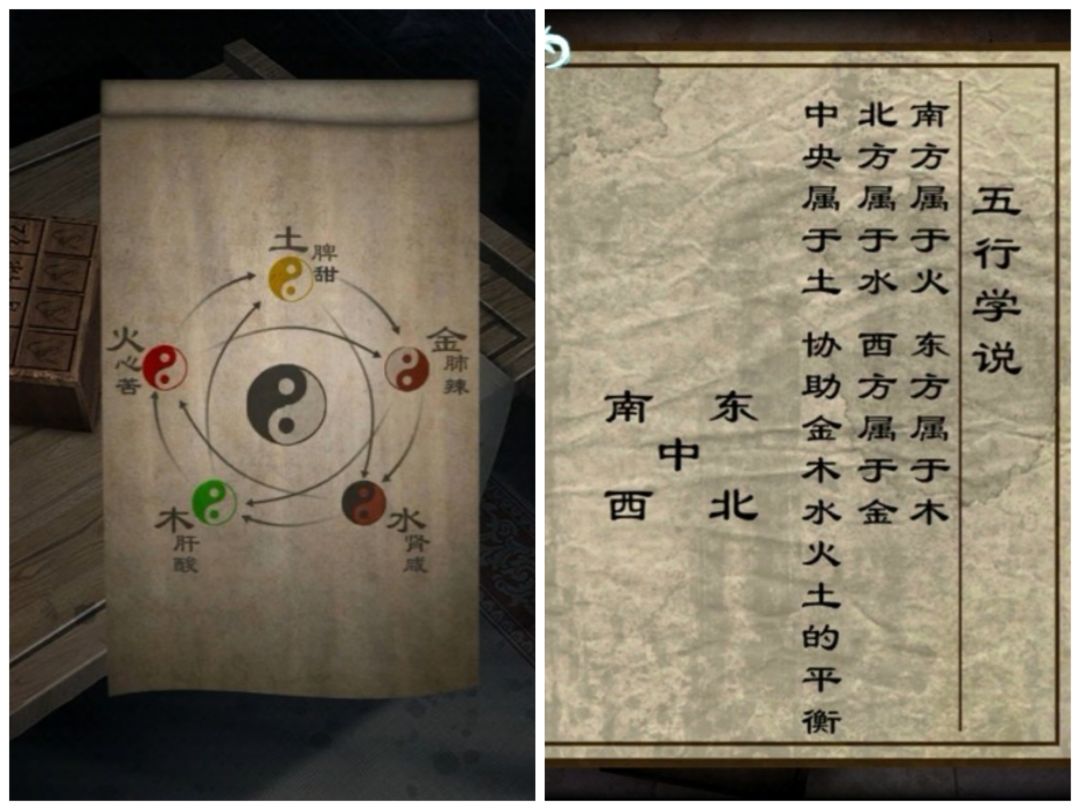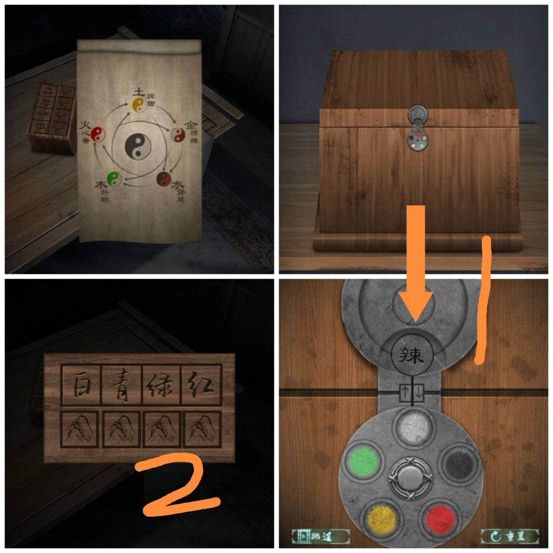 把颜色与五味一一对应打开盒子,得到五脏