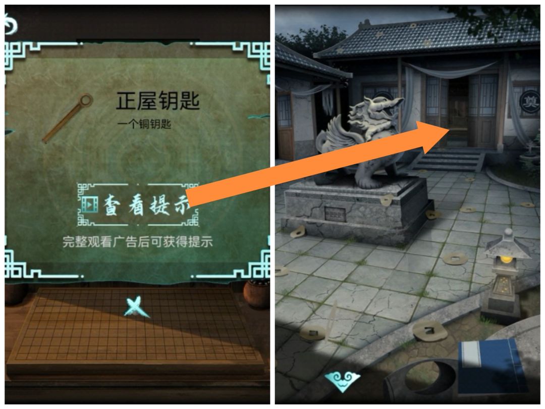 得到正屋钥匙和一个线索