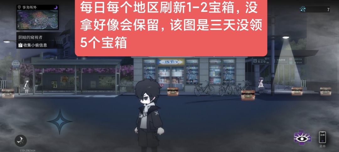 每日各个地区随机刷新1-2个宝箱,不领取好像还会保留。如下图就有5个宝箱!