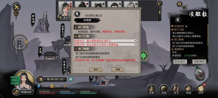 在门派上边有个“改”字,以前真不知道,偶尔碰上的才知道,仙宗魔门、宗门门规、宗门名称都是可以改变的。