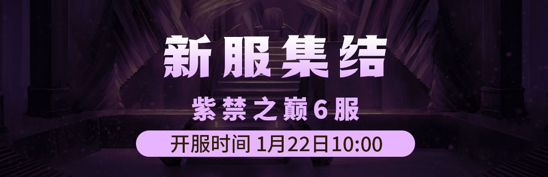 为了给大侠们带来更好的游戏环境与体验,并考虑到游戏内资源分配等因素,1月22日10:00我们将开启全新服务器‘紫禁之巅6服’,邀您体验!