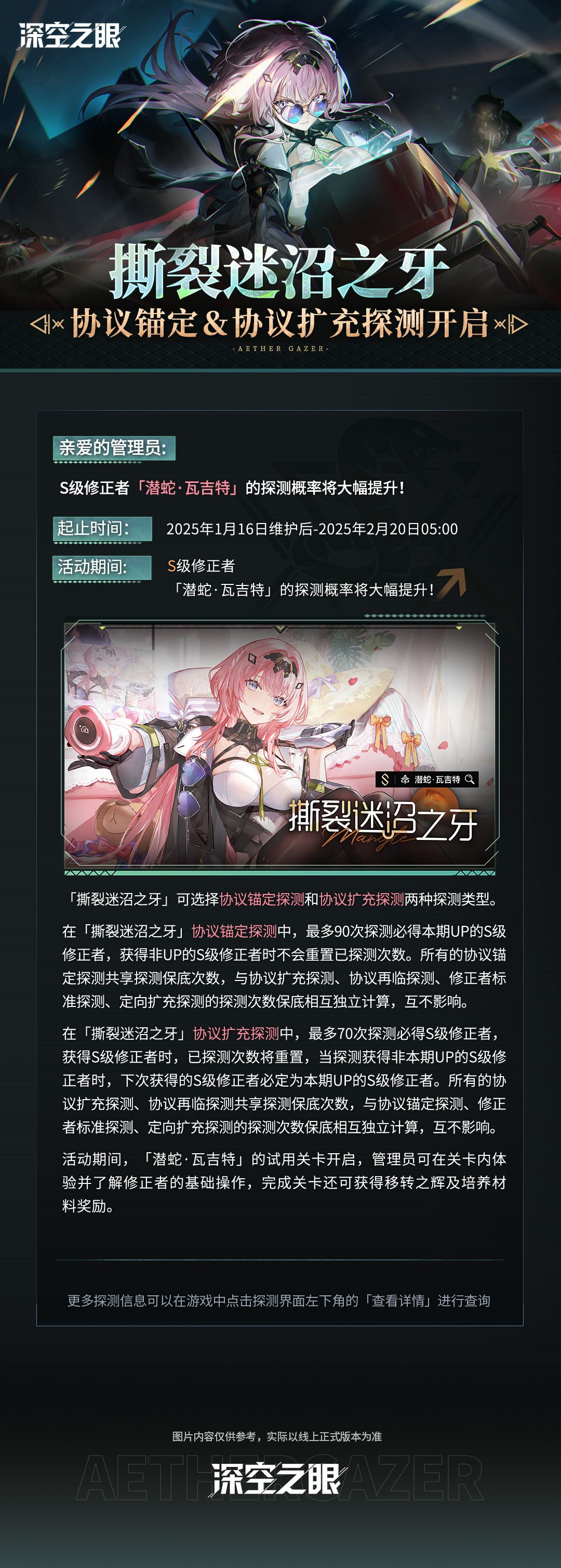「撕裂迷沼之牙」协议锚定&协议扩充探测即将于1月16日维护更新完成后开启,具体探测信息请看下图!