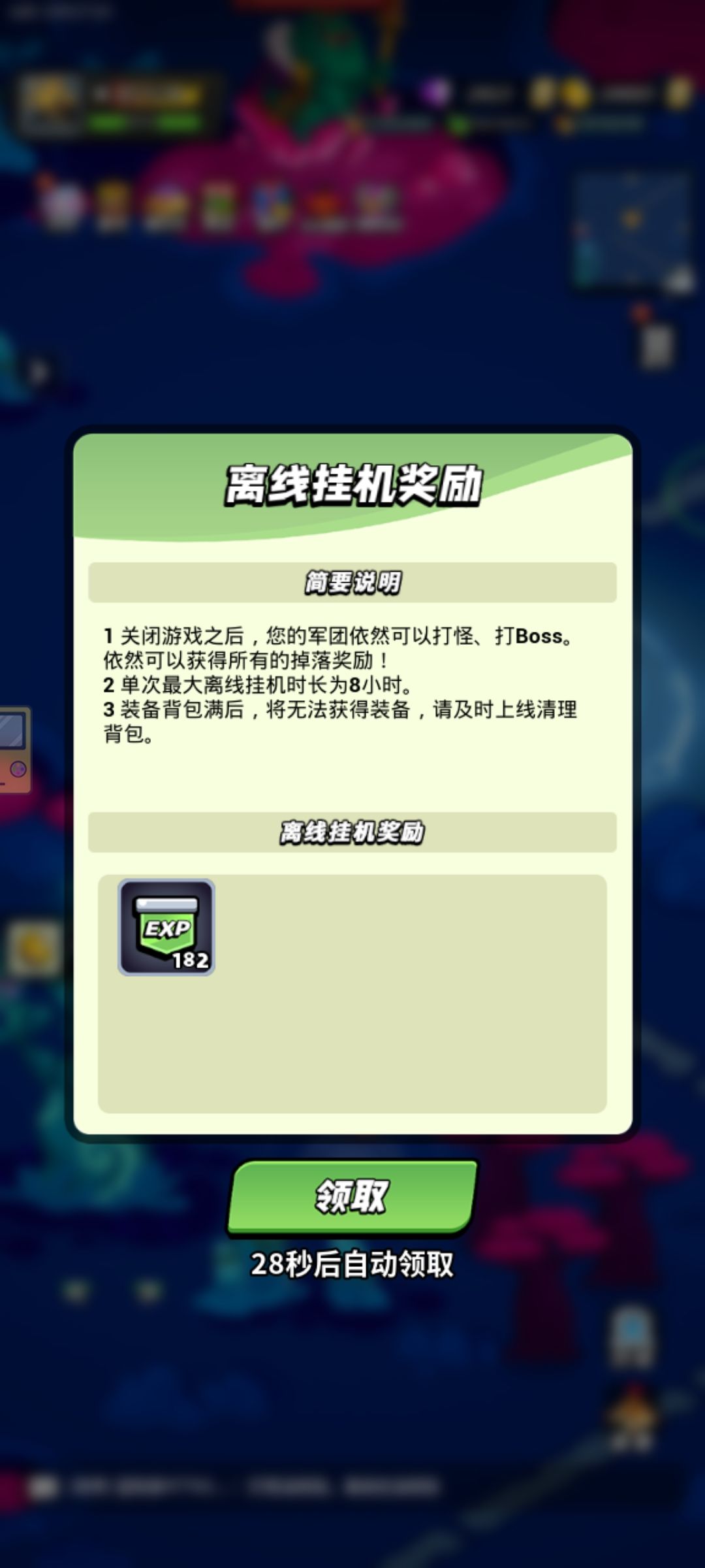 离线挂机没经验。现在在线打怪也没经验。
