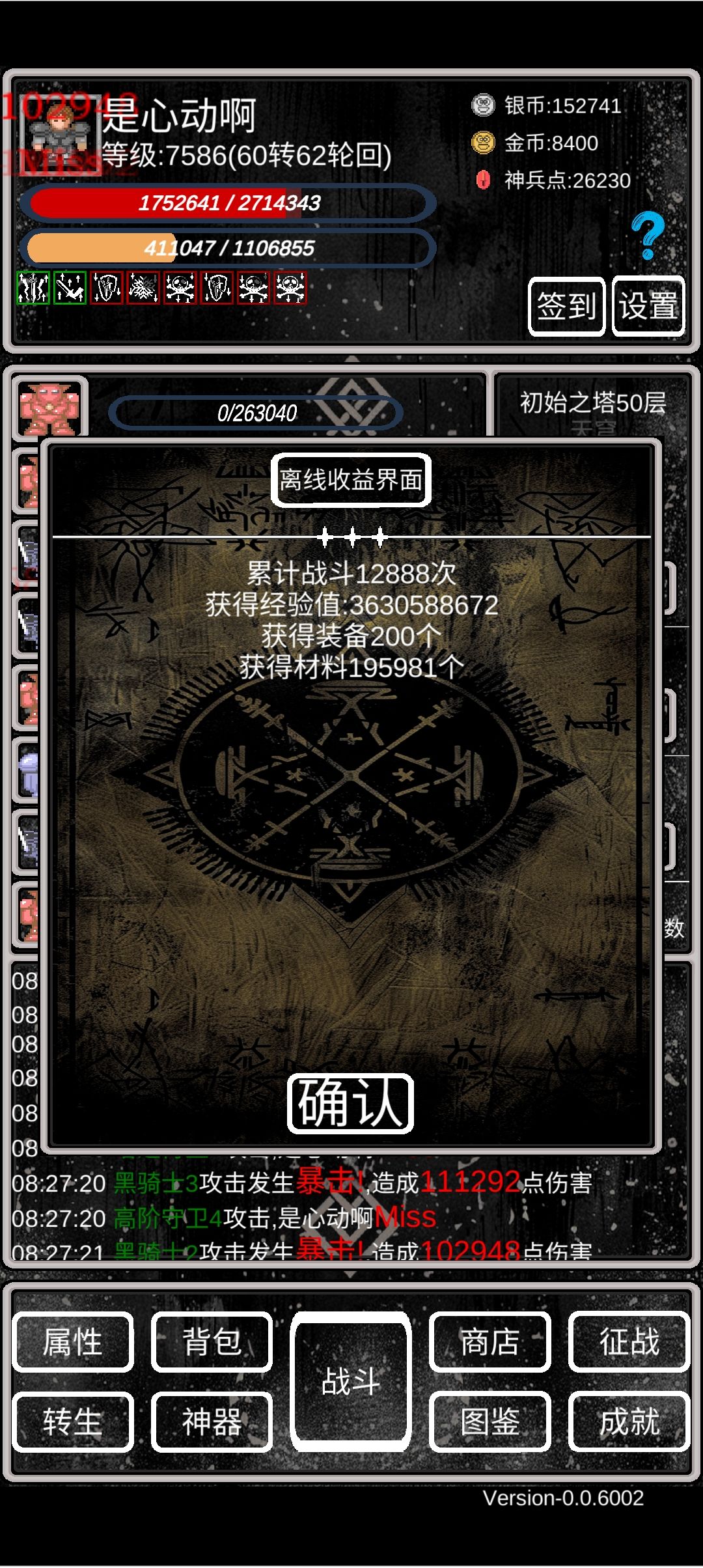 ②离线后上线你击杀的第一个怪(不杀怪不结算离线),离线计算的击杀次数都是这个怪,所以可以刷BOSS怪结算离线,BOSS怪掉特殊的五阶装备(不能装备晋升,图鉴加成最高)