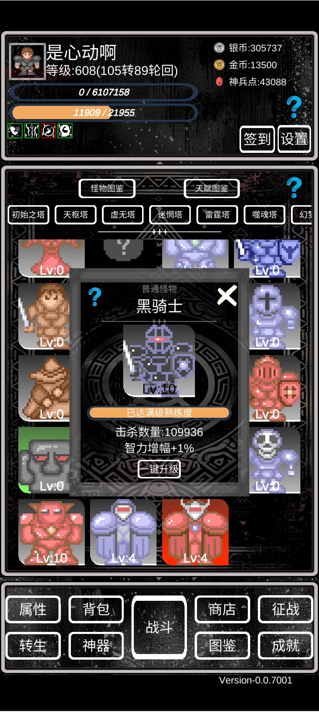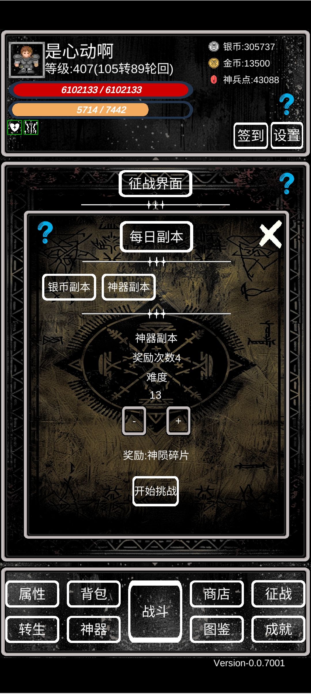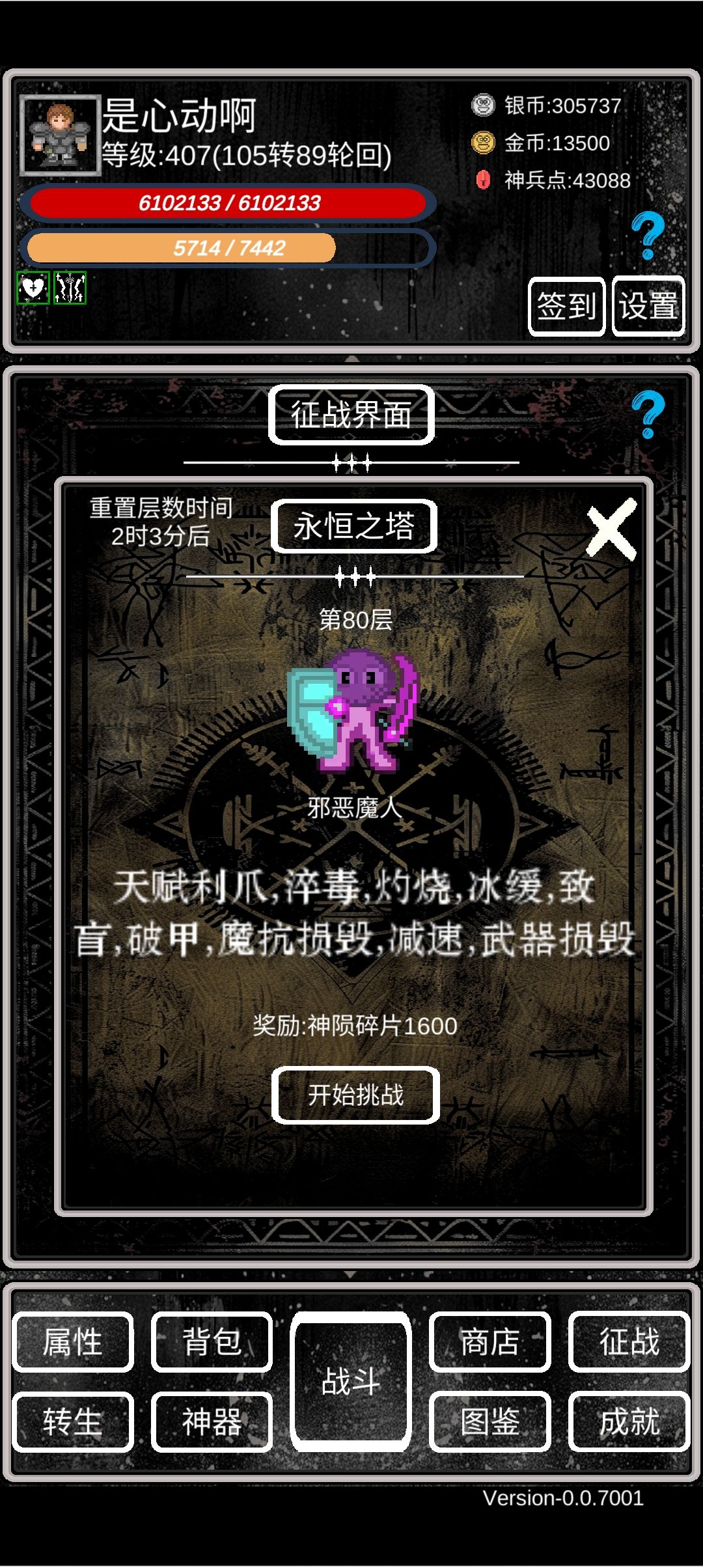 ②神兵碎片塔每周重置,每十层给予层数×20的神器碎片