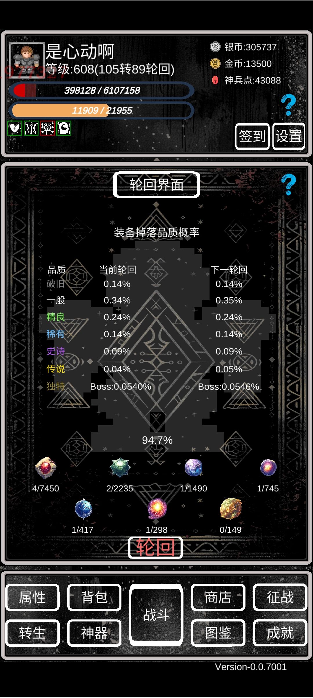 ①轮回需要材料,可以提高装备出率(装备有基础出率,这个额外增加)