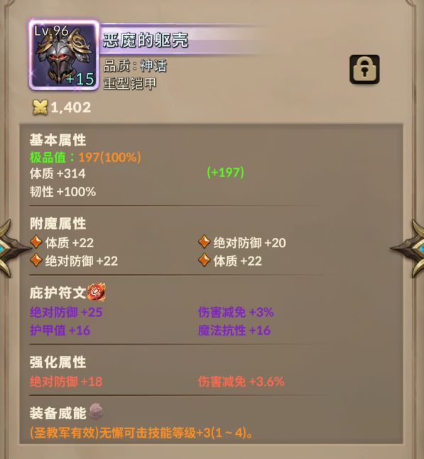 这个BD最重要的是韧性得高,所以衣服没有选择,只能用这个96级得恶魔的躯壳。