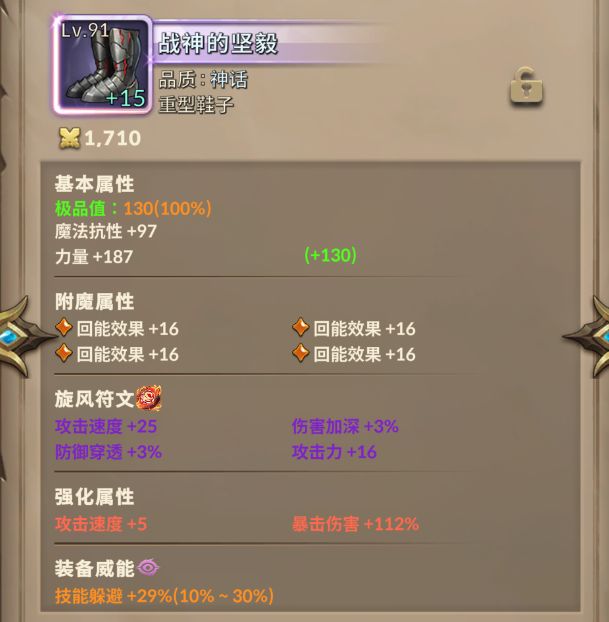 除武器外,另外几件输出装大概就是这样。全力量+回能+暴击率or暴击伤害
