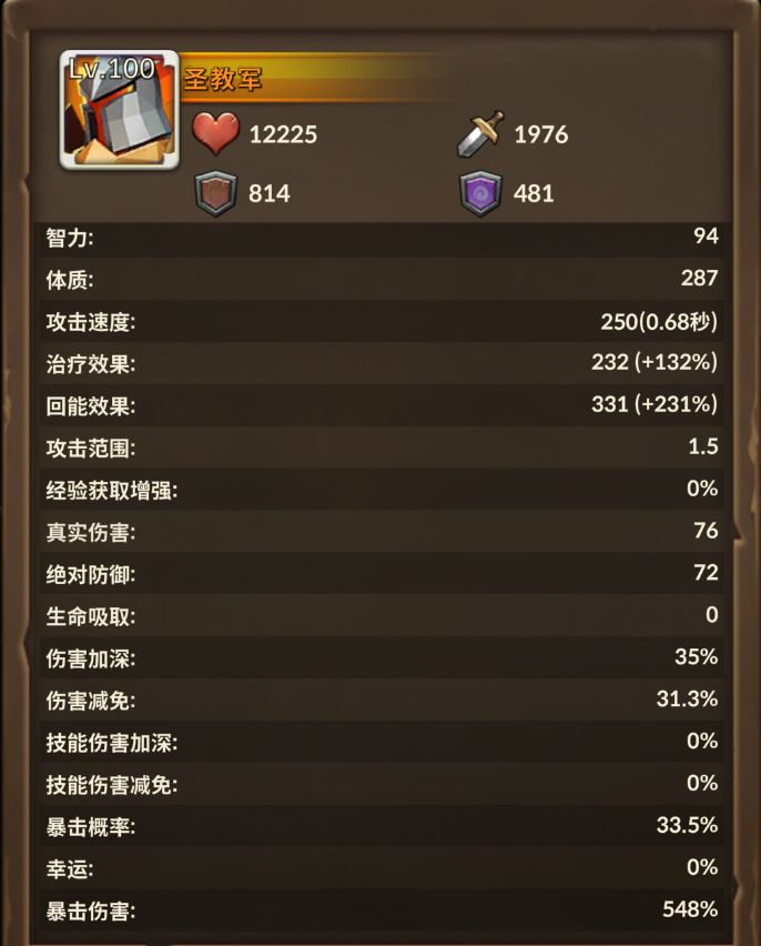 正常圣教军的绝防头,尽可能拉满。核心还是那个8%回血的威能必带。