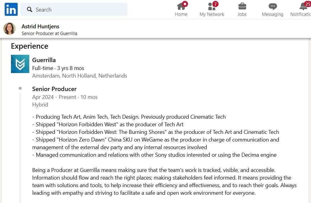 据Guerrilla Games公司高级制作人Astrid Huntjens在LinkedIn上透露的资料显示,未来或许将有更多索尼第一方游戏工作室投身Decima引擎的怀抱。这一消息,就像投入平静湖面的巨石,瞬间在索尼游戏开发的领域中激起千层浪,引发了无数的猜测与遐想。