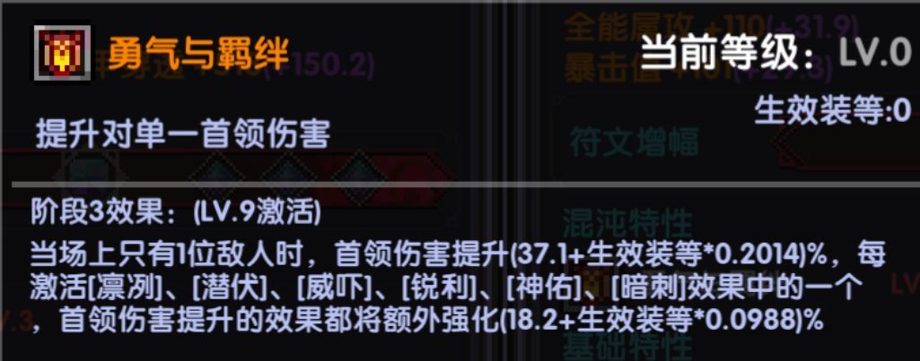 在这个情况下,勇气鞋的基础特性“暗刺”(2级)会减少boss390的护甲,所以此时只需要9610穿透的面板即可。