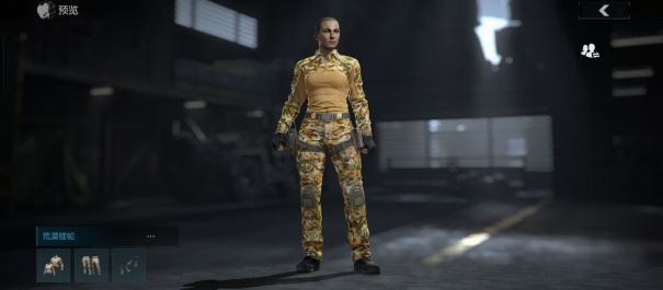 为了能让作战单位更好的在旷野中隐藏自己,特制了此种荒漠作战服。蝰蛇迷彩能提高在荒漠地带的隐蔽性。