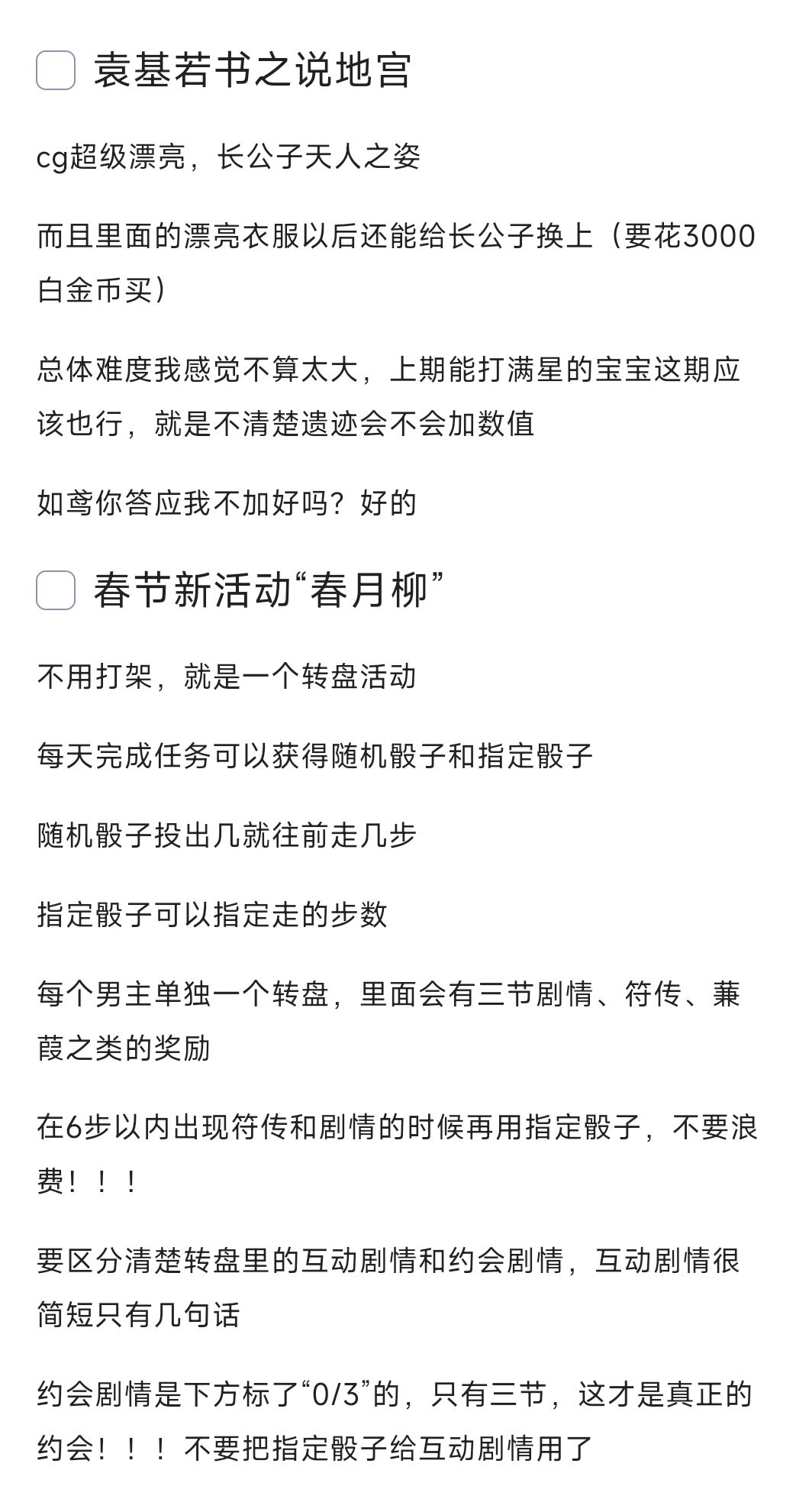 补充一点:这个活动如果不氪的话,全勤只能拿全2-3位男主的剧情,建议先把自推剧情拿全了再去转别的男主的转盘哦
