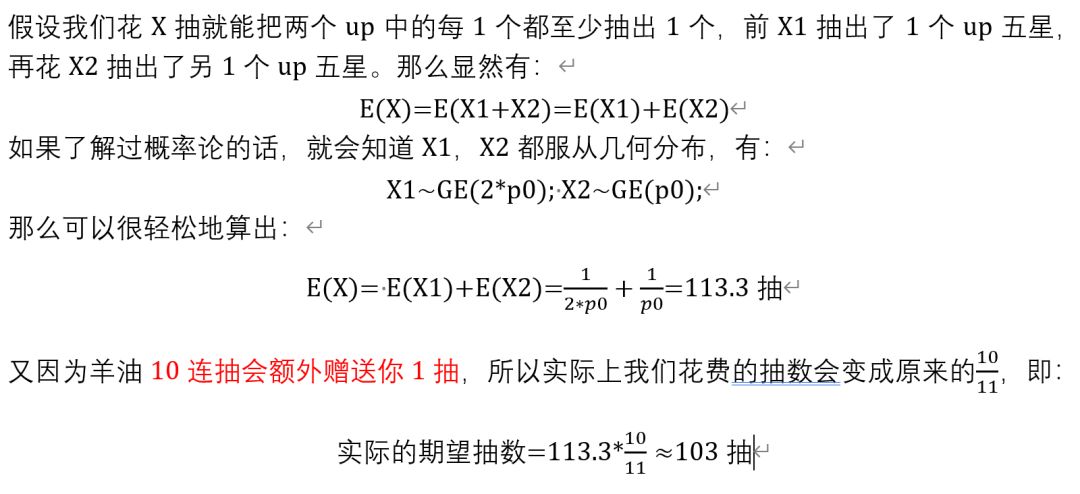 (二)拿下双up的期望抽数(每个up至少抽出一个)