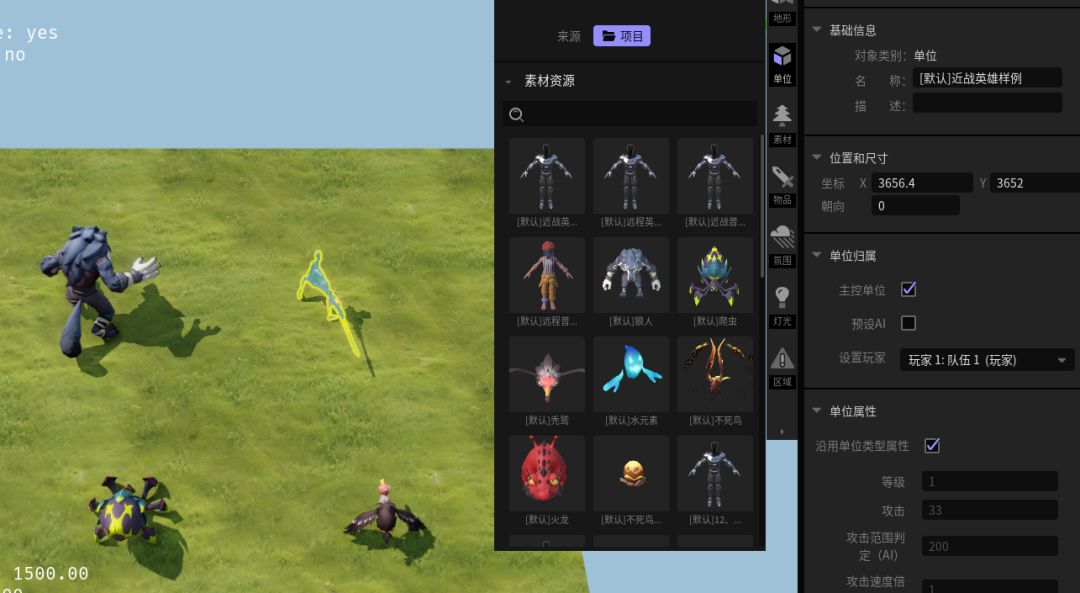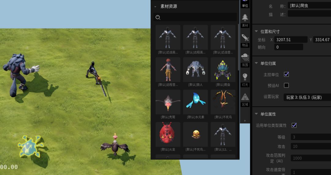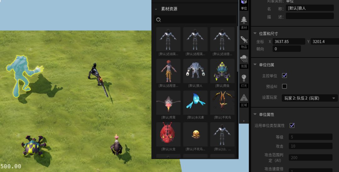 3.在地图放放几个测试单位并设置成各个玩家的主控单位