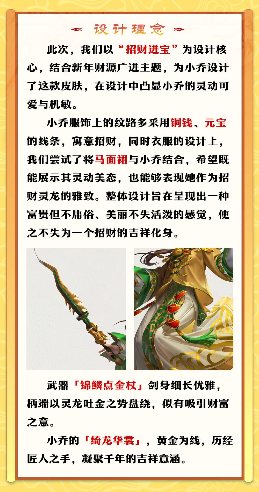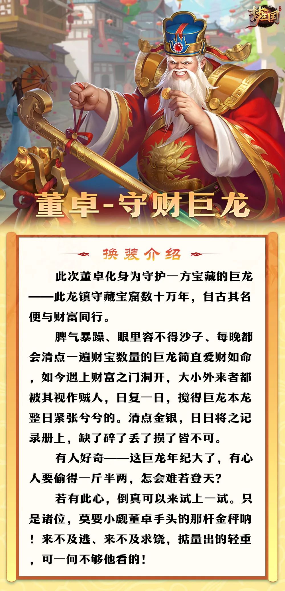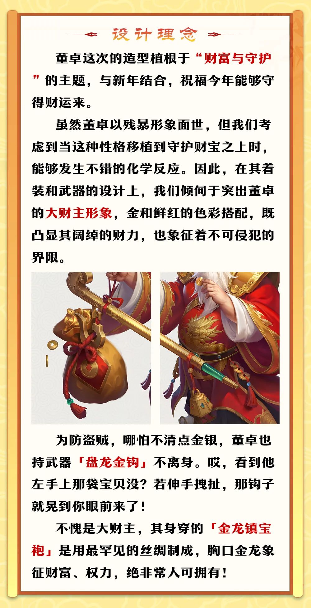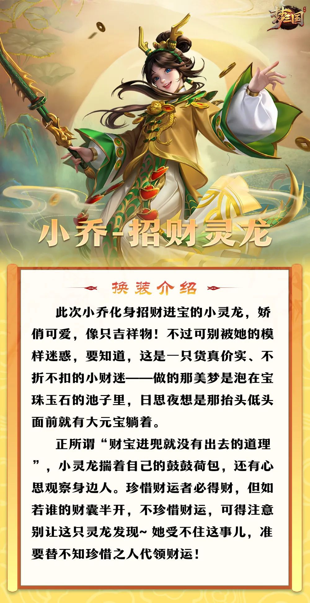 一门里,疑有日夜护宝的巨龙,警惕之心从不停歇;一门里,娇俏灵龙眸光狡黠,机灵聪慧,时时坚信财运至上;一门里,全身闪耀黄金的战龙,其飒爽英姿轻易便能使观者肃然起敬。各位仙术师,准备好在新一年里去探探这三扇财富之门了吗?去感受瑞兆、迎接好运,相信趁此机会,你们定能与三位财富使者都结下良缘!