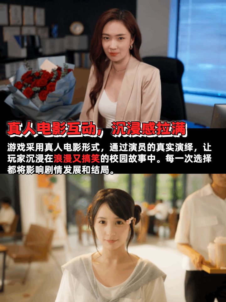 游戏采用真人演员演绎,通过电影形式沉浸式体验校园故事!🎥你的每一个选择都会影响剧情走向和结局~