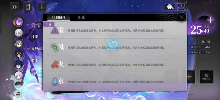 - 了解手中角色的属性和技能,进行合理搭配。每个角色都有职业它决定着此角色是c还是辅,抽卡的时候也要注意一下。还有律相属性,有***火水不同的属性,每个之间相相深刻,也决定了击败怪物的弱点。