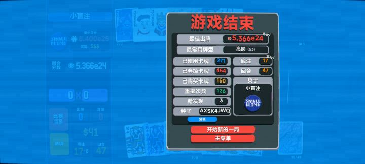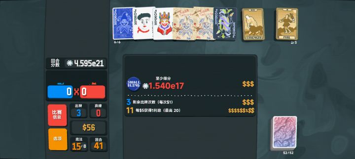 小丑完美,但是卡组太烂了,一半废牌。塔罗\灵体手牌上限一张优惠券都没捞到,即便如此,要不是手牌废牌卡手,仅靠7钢k在手冲个底注17不成问题