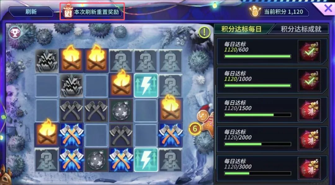 然后就是刷分技巧了,每天第一圈先把5个馈赠翻出来,其他的直接放弃跳过,以免之后馈赠占位置。然后开始,尽可能地先把地图开出来,看有多少个挑战,如果特别少的话直接刷;如果挑战不少,但是点进去几个发现都是160、240积分的挑战,那也直接刷,想刷到白嫖所有奖励的积分,要保证地图有15、16个挑战,并且绝大部分挑战的积分都大于240。