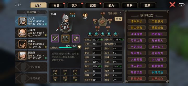 在娶郡主的时候要去爬开化塔,前五层平推,结果第六层跟董道甫聊了几句就开打打不过,大佬帮我看看面板,是需要刷什么功法还是装备。