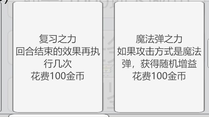 魔法弹之力(100金币):获得5张随机增益(非常超模)