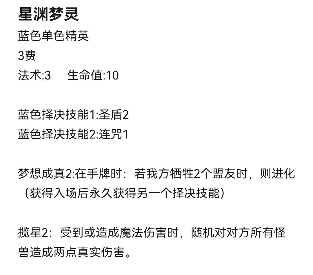 - 【基础属性】:卡牌:〈近战〉〈法术〉〈随机伤害〉〈治疗〉〈群体治疗〉〈生命值〉