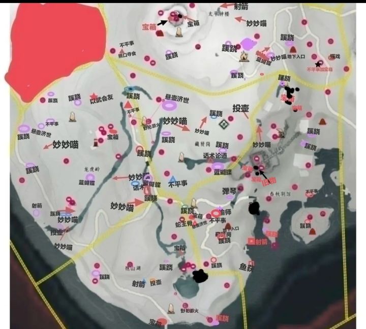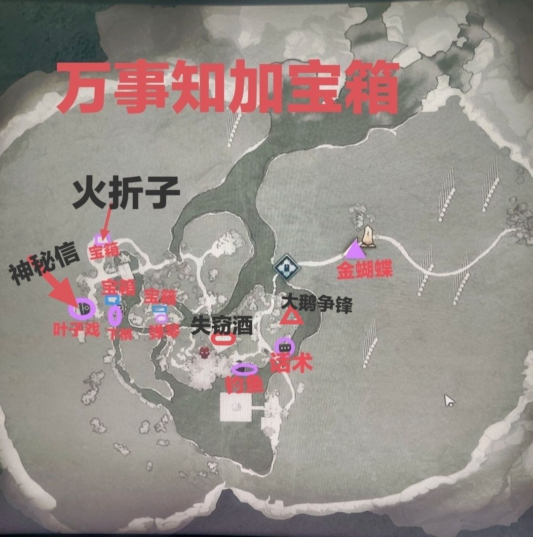 地图全是全红点都是宝箱,其它不同的都有字