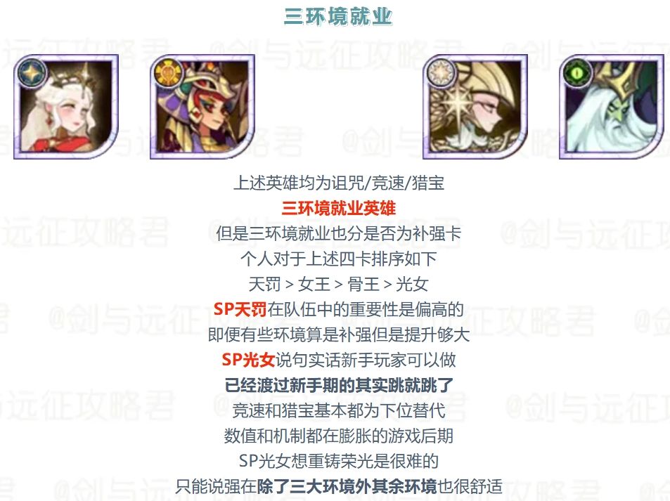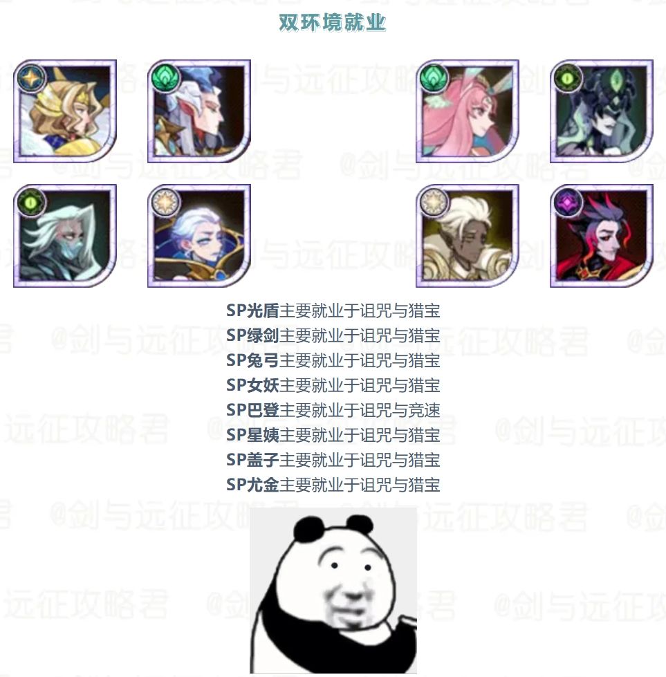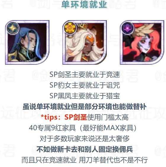 其余没提到的就是单环境就业的那几个,根据自身侧重方向倾斜即可。(SP尤金慢慢兑换就好 不建议用SP券抽)
