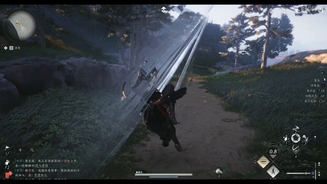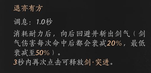 释放完第一段之后,我们是可以取消后摇的,使用卸势就可以打断后空翻,并释放剑气