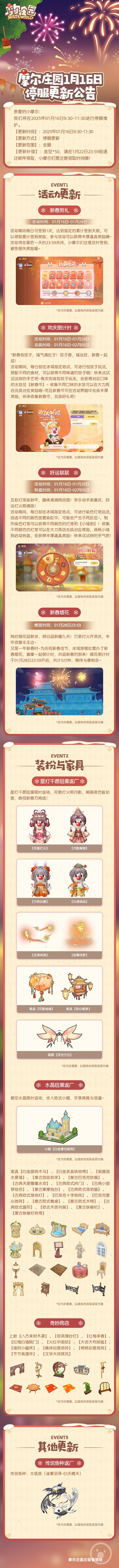 《摩尔庄园》1月16日更新公告