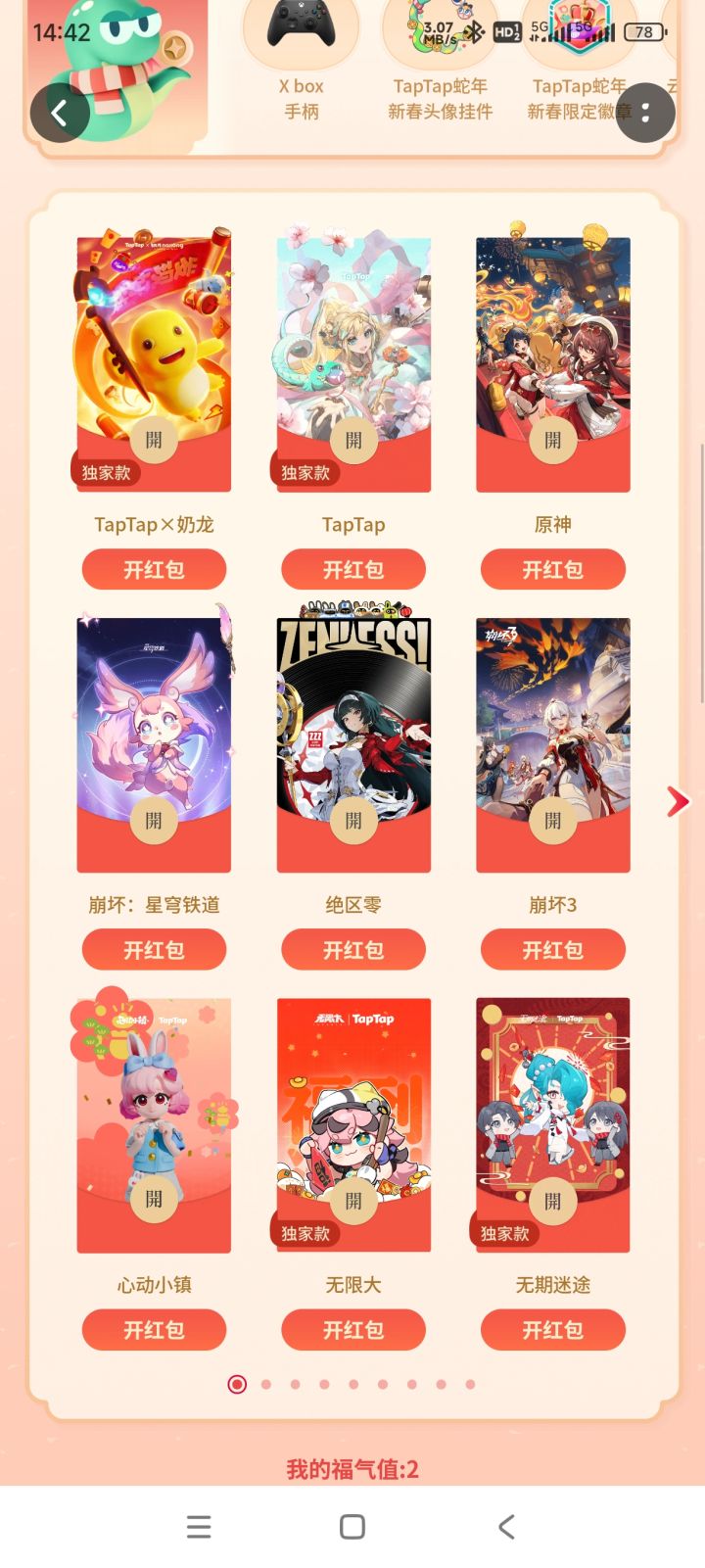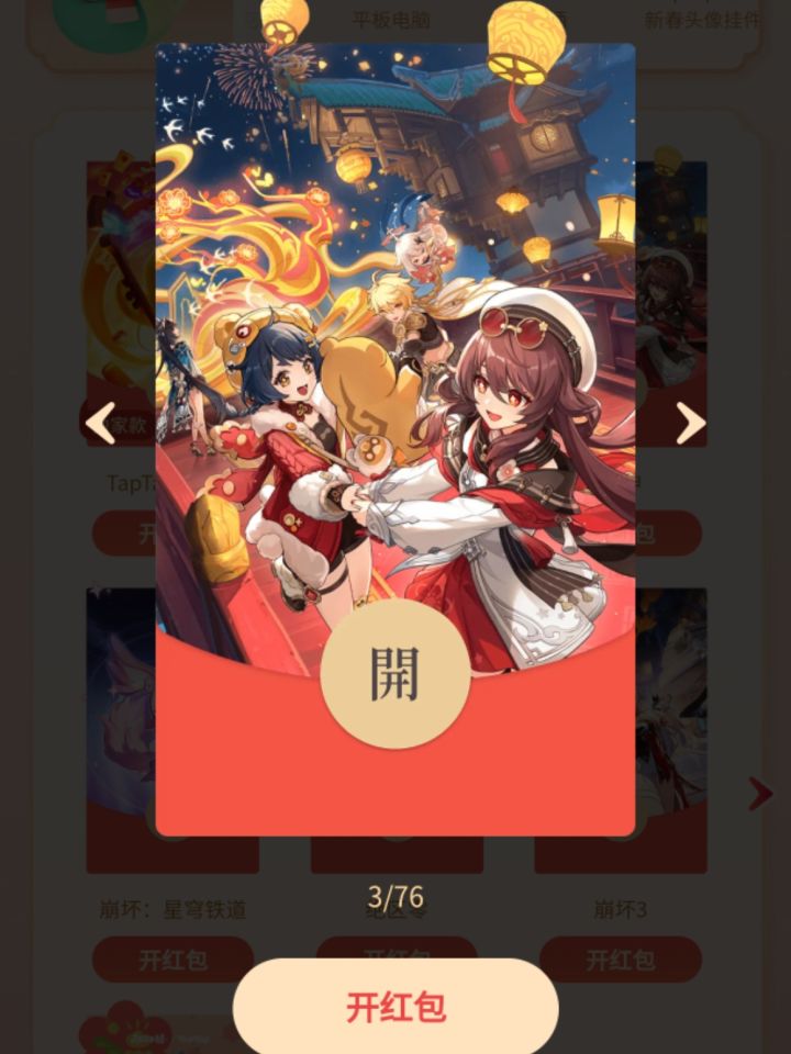 2024年1月15日,Taptap正式开启了新春红包封面活动(红包福利狂欢节),可以获取各大游戏的封面红包,包括米哈游的几款热门游戏。